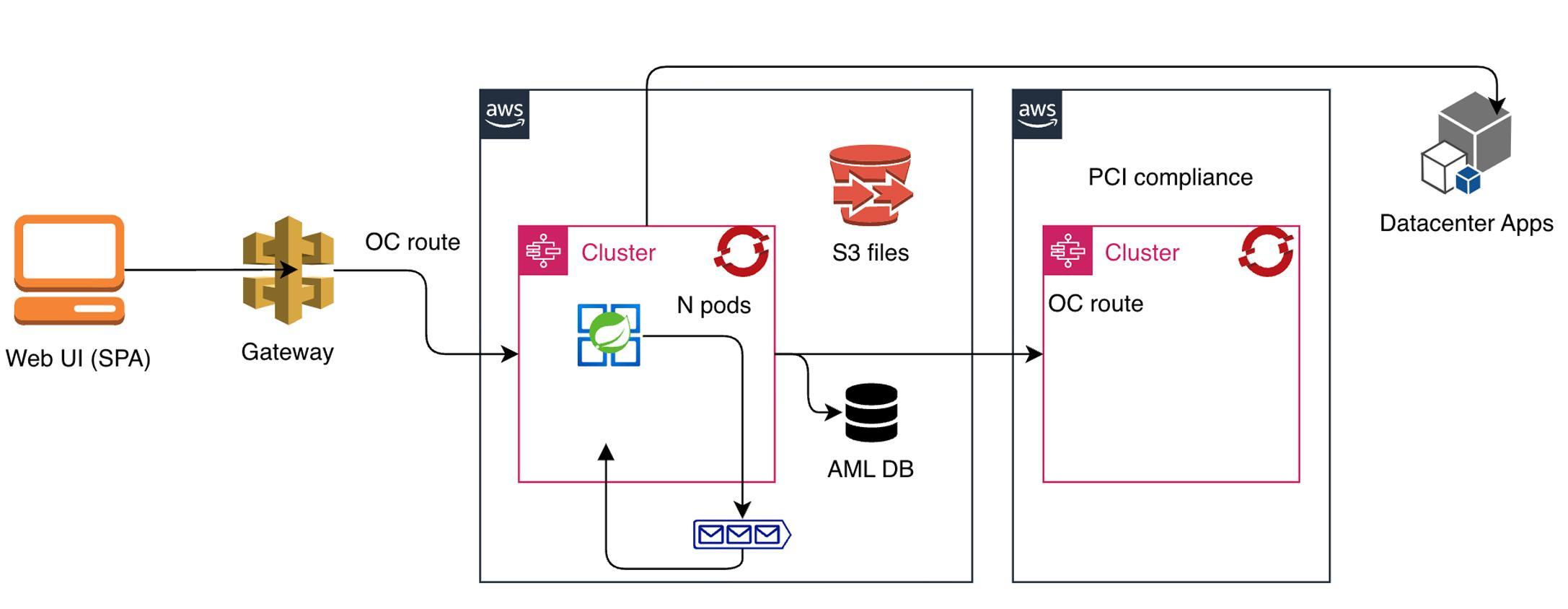 Stack: IAM Keycloak, Java, React, Gradle, Kotlin, Gitlab CI/CD, Azure AKS, AWS RDS, Service principal, Spring Core, Spring Web, ISTIO Gateway, ISTIO MTLS, Ingress Controller, OC Routes, AWS Simple Queue.